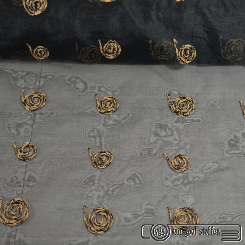 100% zijde organza double, deze organza is dikker en stijver dan de normale organza en is minimaal doorschijnend. 150cm breed en 60 gram m2. Zeer exclusieve haute couture stof