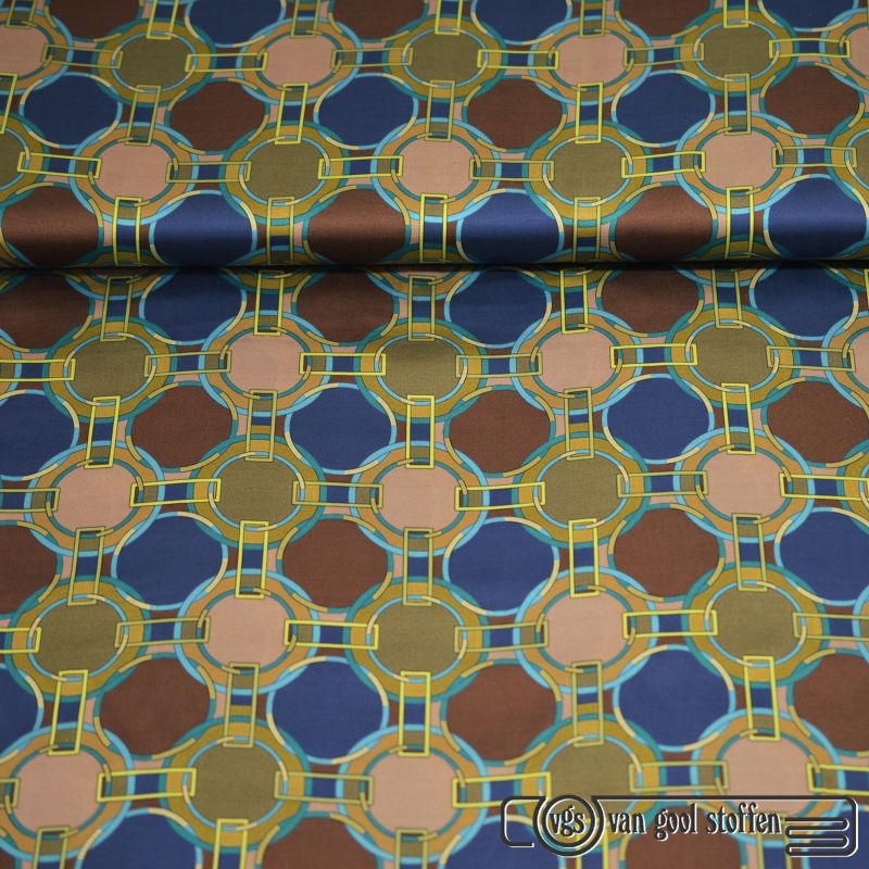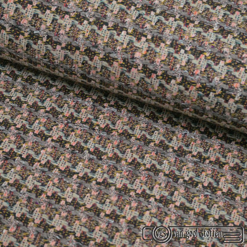 Exclusieve wollen ruit italiaanse designer stof beige oranje groen bruin