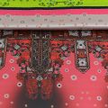 Tüllspitze mit einer breiten Kante auf einer Seite, die andere Seite des Stoffes ist mit einer schmalen Wellenkante versehen.