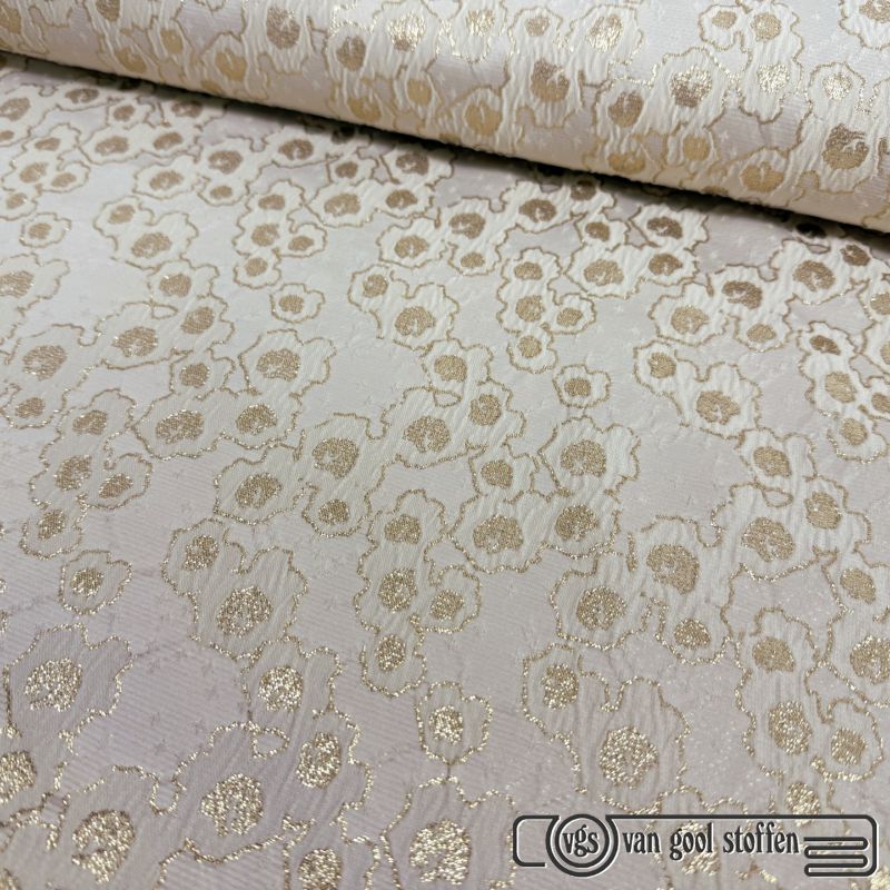 Exclusieve jacquard brocaat goud metallic bloemen print