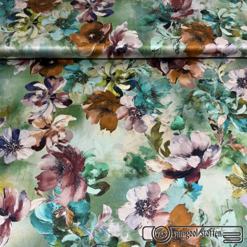 Viscose stretch ecovero lenzing digital bloemen A La Ville groen