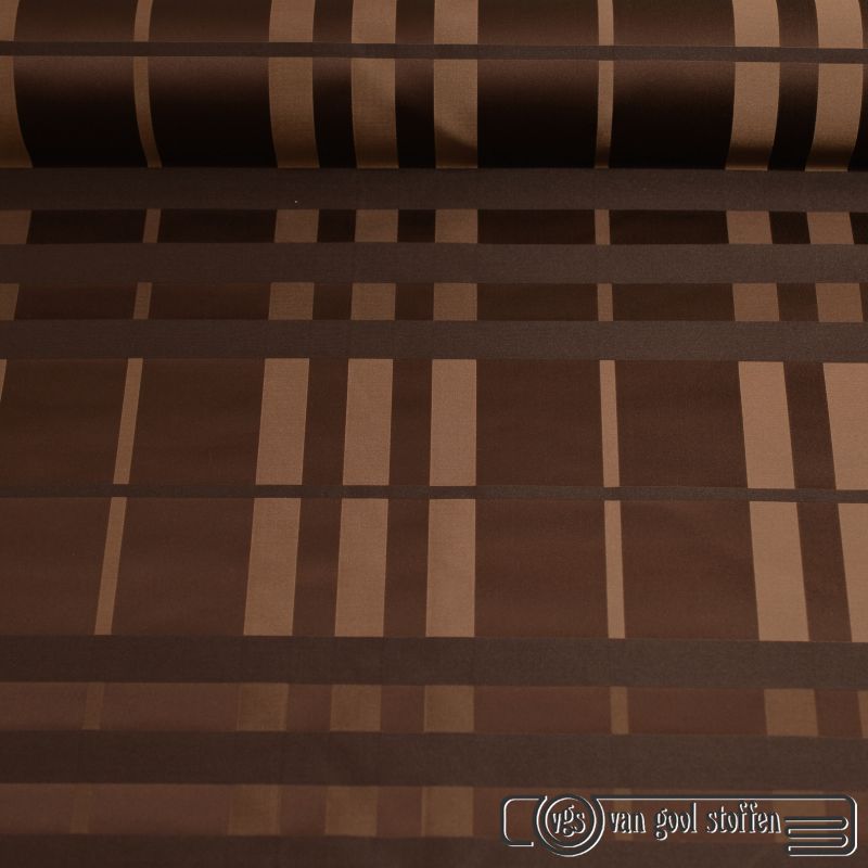 Mikado exclusief italiaanse designer stof jacquard geweven ruit donker bruin.