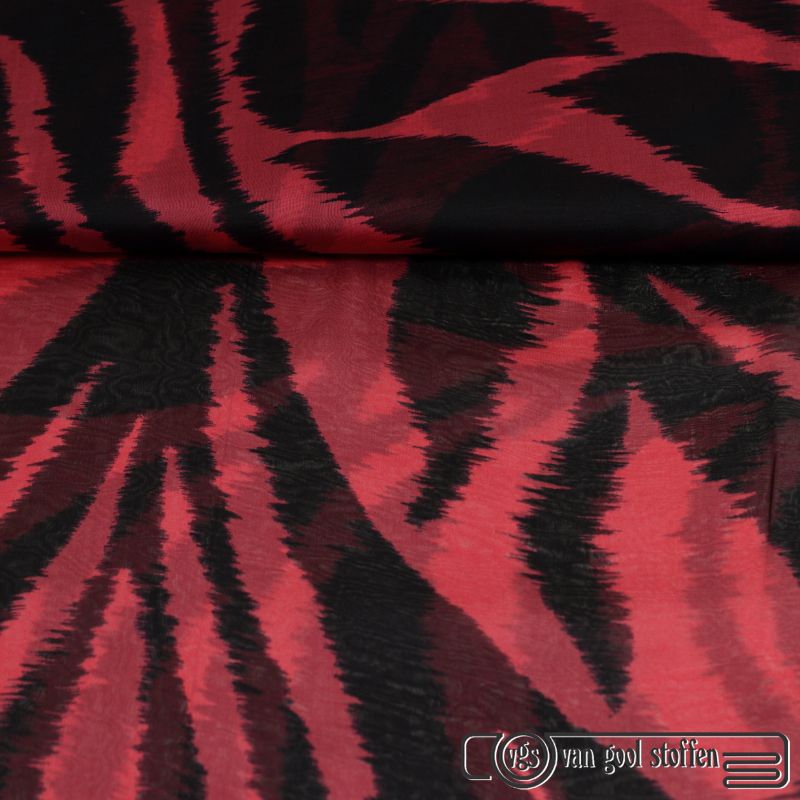Zijde voile gevlamd cerise rood zwart exclusief Italiaanse designer stof.