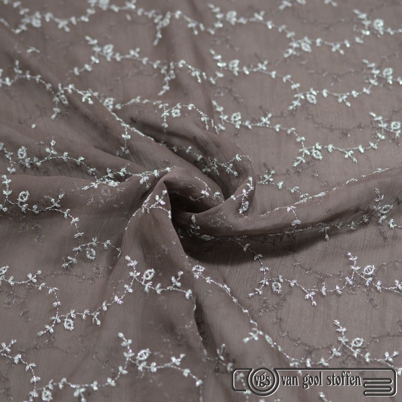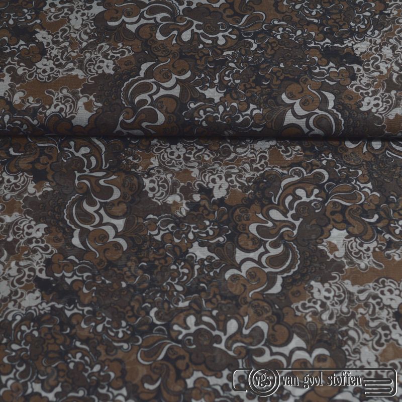 Zijde voile floral choco exclusief Italiaanse designer stof.