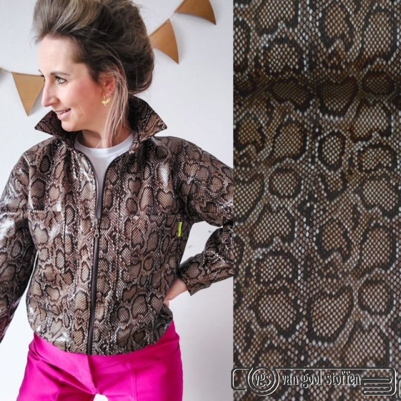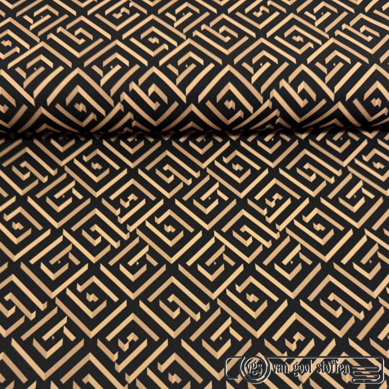 Comfort stretch exclusieve designer deadstock zwart camel abstract print