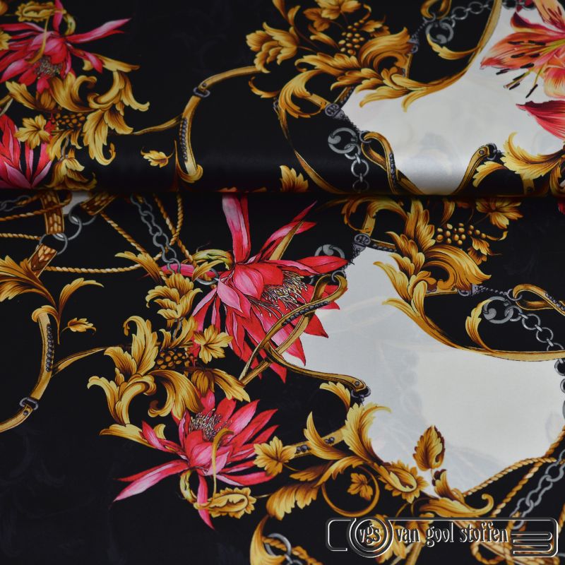 Punta jersey milano exclusieve designer stof zwart dobby print