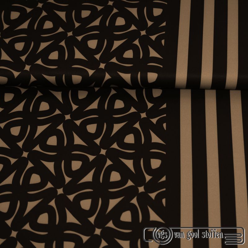 Stretch satijn duchesse italiaans designer stof abstract streep zwart beige
