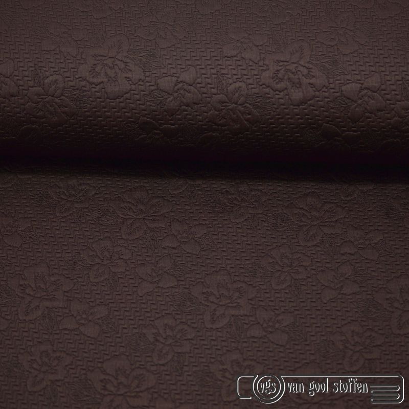 Zware jersey jacquard print bloemen exclusieve designer stof donker bruin