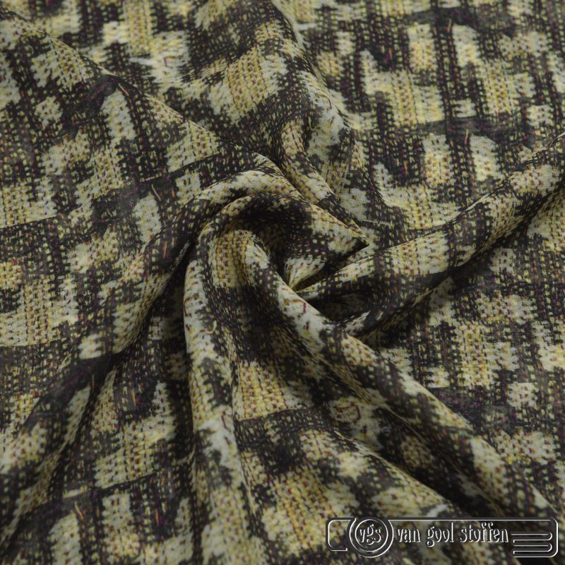Zijde voile abstract groen exclusief Italiaanse designer stof.