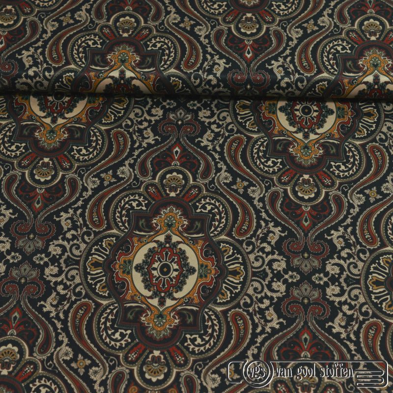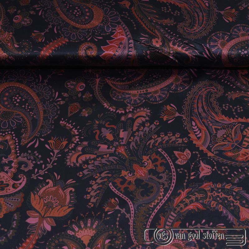 Zijde viscose satijn paisley print exclusieve designer stof
