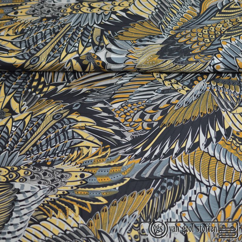 Exclusieve zijde feathers oker grijs zwart Italiaans design