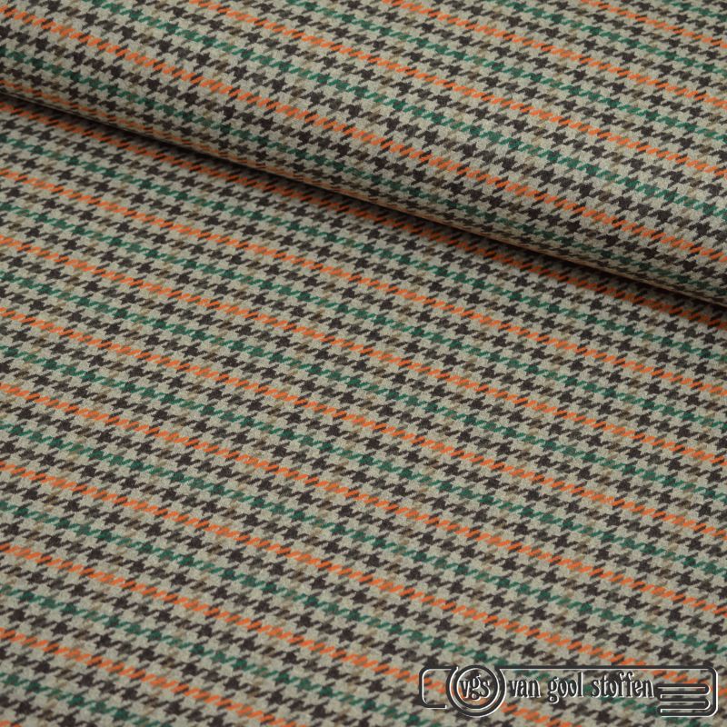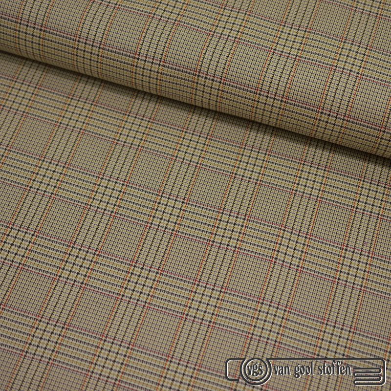 Exclusieve wollen ruit italiaanse designer stof beige oranje groen bruin