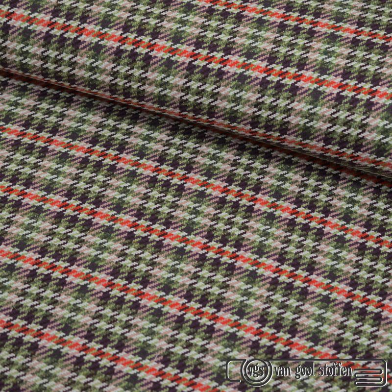 Exclusieve wollen ruit italiaanse designer stof aubergine oud rose mos groen rood