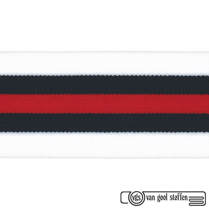 40mm Elastiek met Geweven Streep 40mm wit donker blauw rood