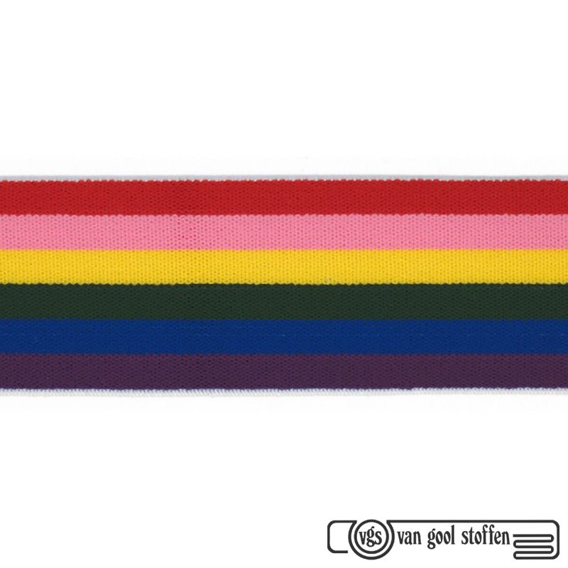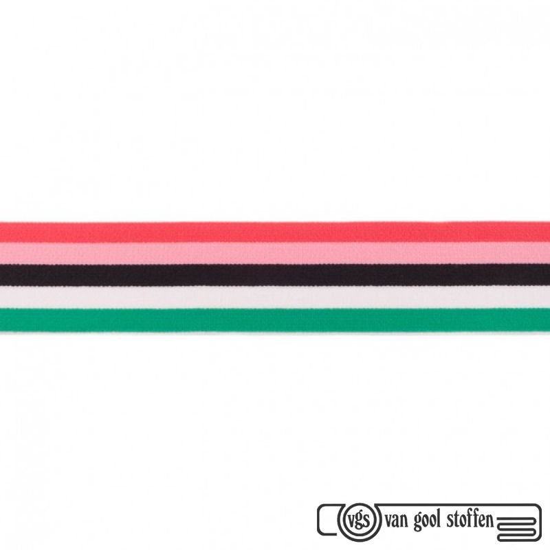 40mm Elastiek Multi Streep Breed 40 mm Groen wit zwart rose