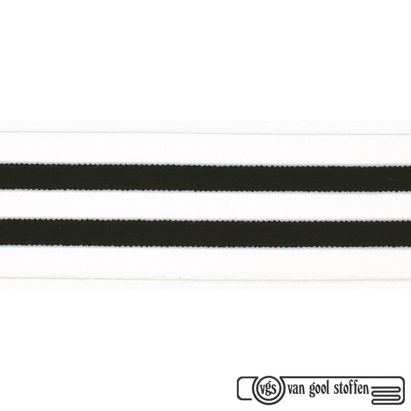 40mm Elastiek met Geweven Streep 40mm zwart wit 2streep