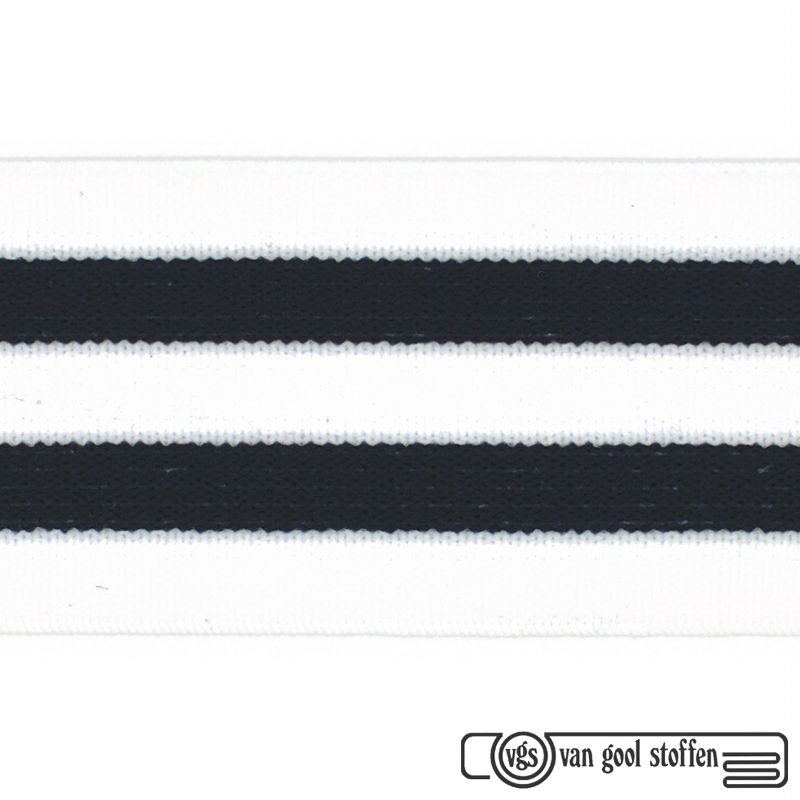 40mm Elastiek met Geweven Streep 40mm donker blauw wit 2streep