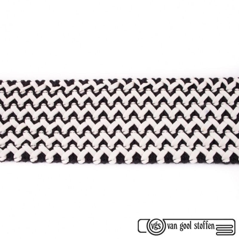 65mm elastiek gevlochten met kunstleder zwart white off 65mm