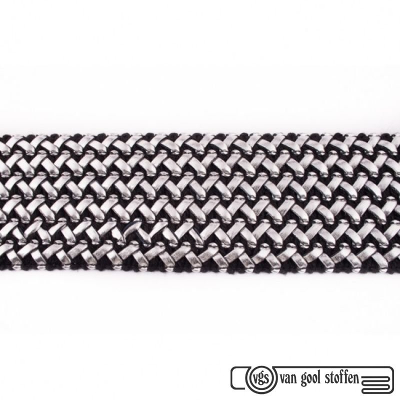 65mm elastiek gevlochten met kunstleder zwart zilver 65mm