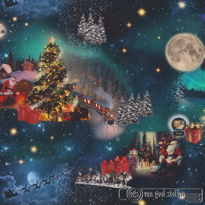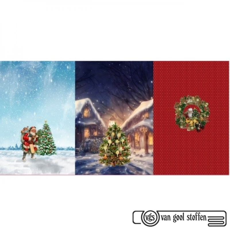 Panel French terry / swaet tricot panel kerst 75cm x 150cm breed 3 luik
