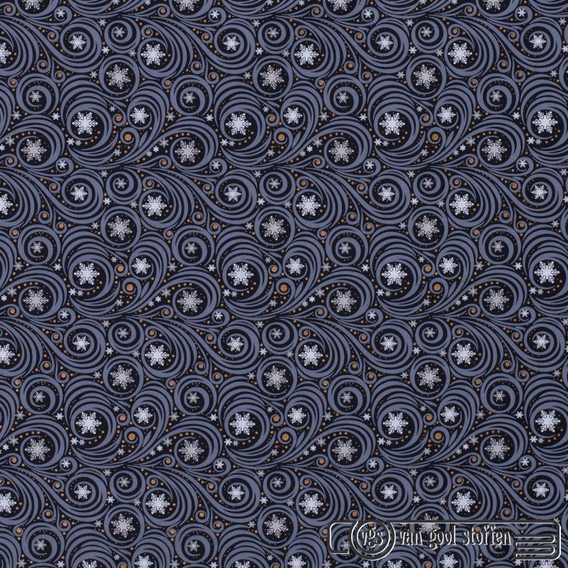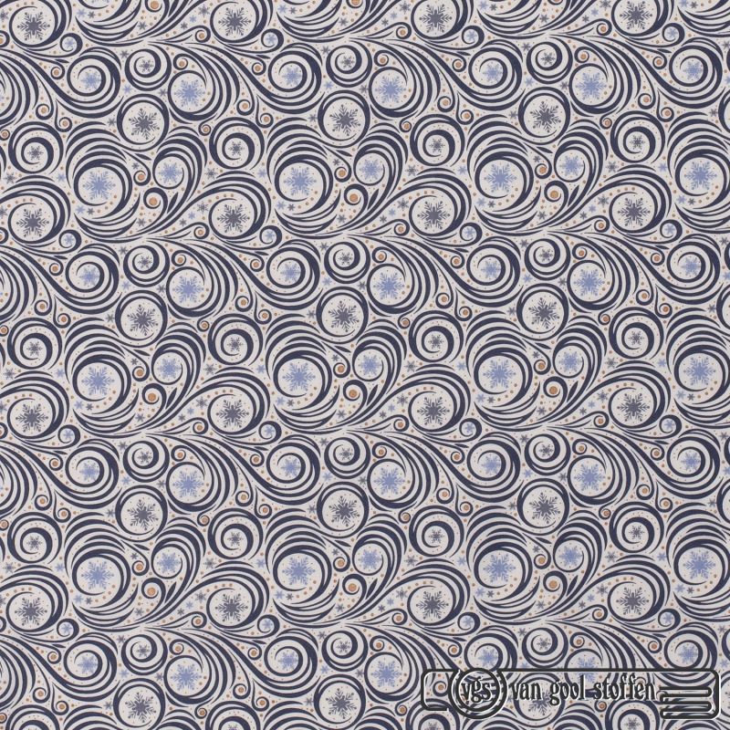 Katoen poplin kerst stof slinger motief blauw met goud folie