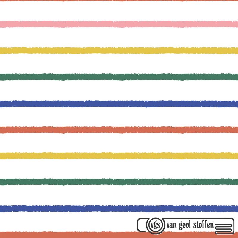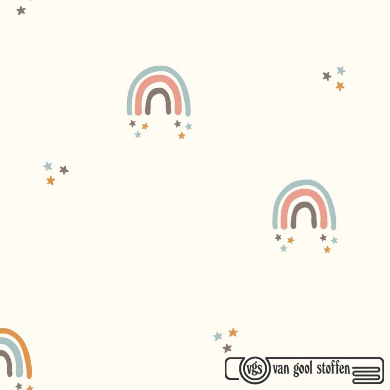 Katoen poplin regenboog gebroken wit