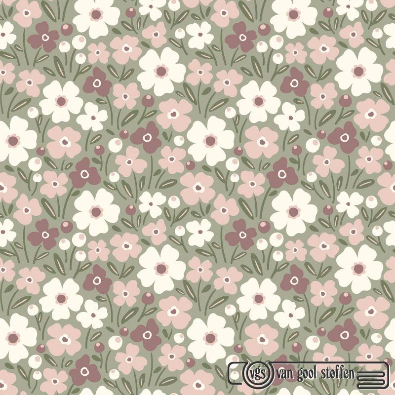 Katoen poplin bloemen oud mint groen
