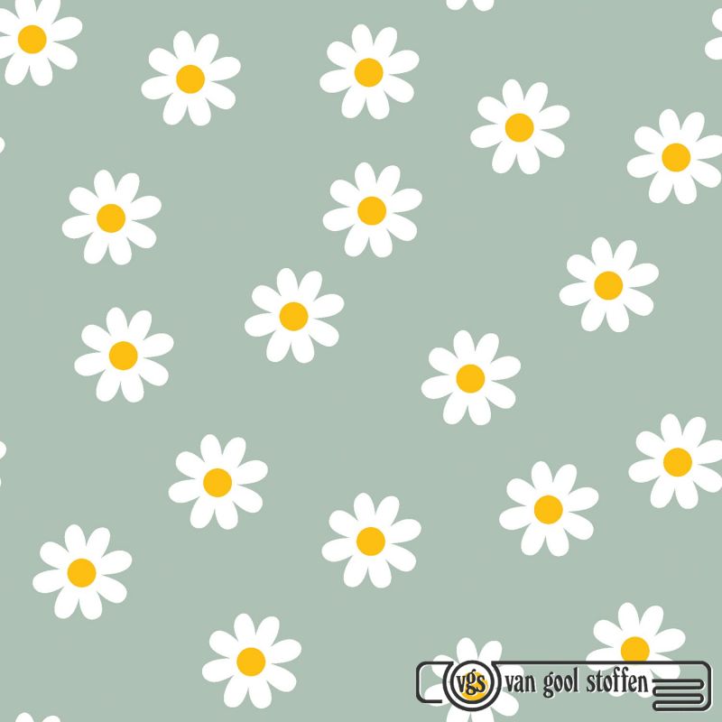 Katoen poplin madeliefjes bloemen mint groen