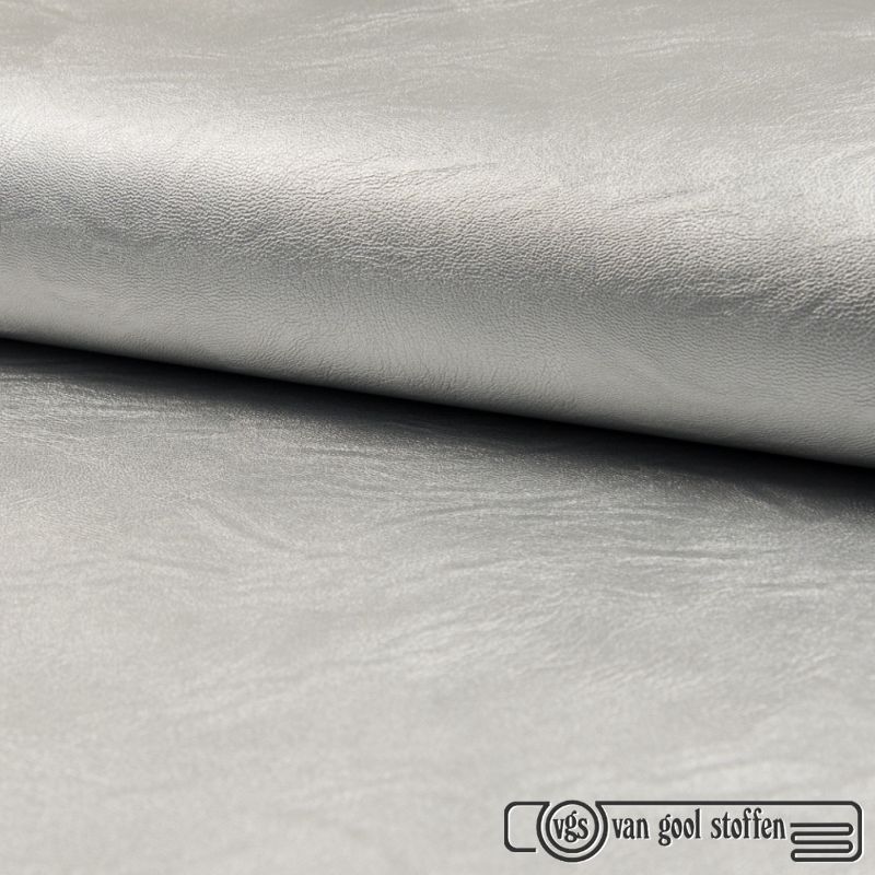 Kunst leder / imitatie leer rekbaar zilver metallic