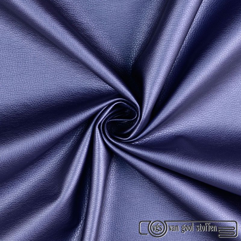 Leder stof / imitatie leer vegan leather metallic denim blauw