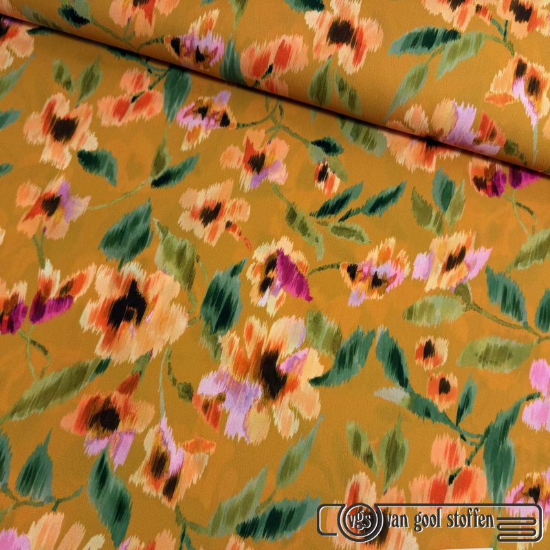 Stretch crepe digitaal printed bloemen kerrie A la ville / bittoun