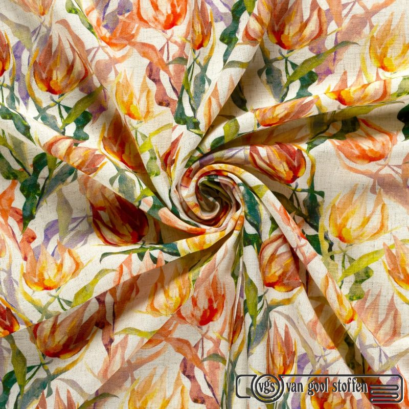 Linnen viscose tulpen print naturel My image
