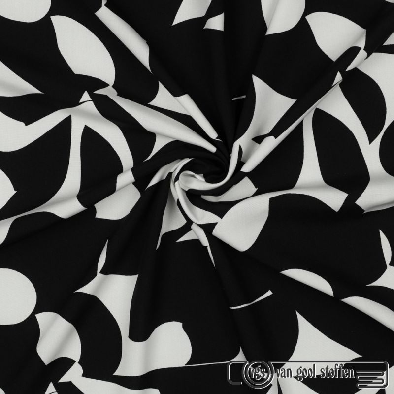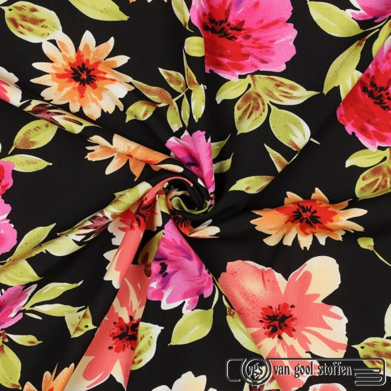 Mikado exclusief italiaanse designer stof zwart met bloemen