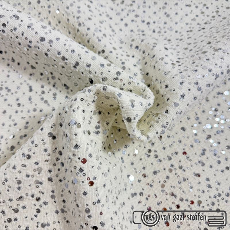 Mesh stof met zilveren pailletten ivory
