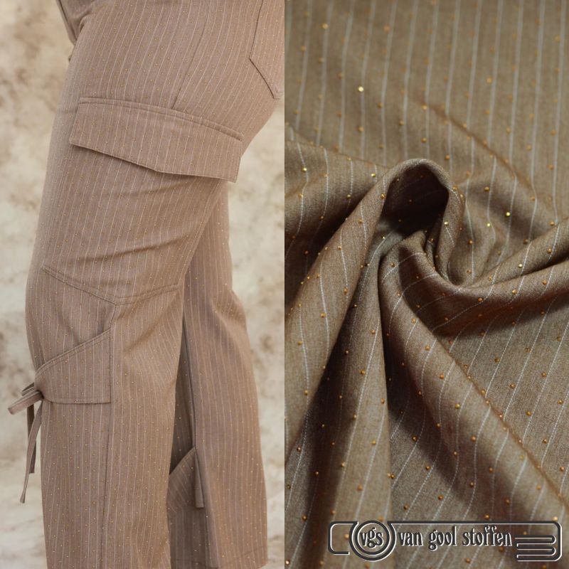 Krijtstreep met glitter steentjes goud camel melange -A la ville / knipmode