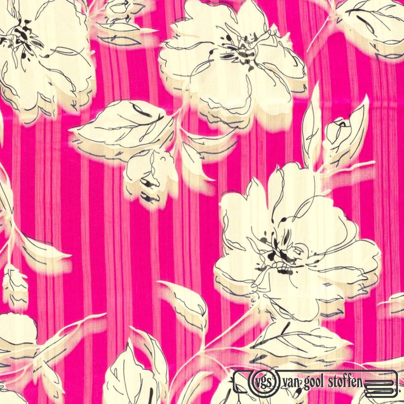 Chiffon krinkel abstract print cerise lime groen #A la Ville
