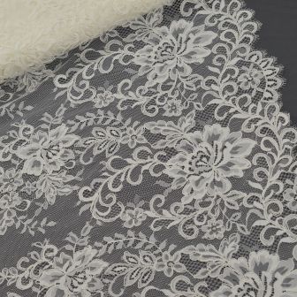 Coupon 0.30cmx1.30 laatste van de rol , artikel niet meer leverbaar op=op!!! Franse kant met wimperrand en spiegelrand, dus de kant is aan beide kanten het zelfde afgewerkt.