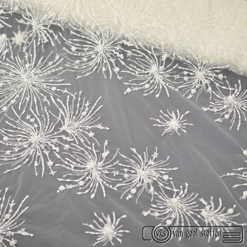 Franse kant met wimperrand en spiegelrand. laatste stuk van de rol slechts 1 beschikbaar. coupon 0.90 bij 1.32 meter