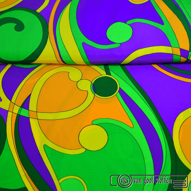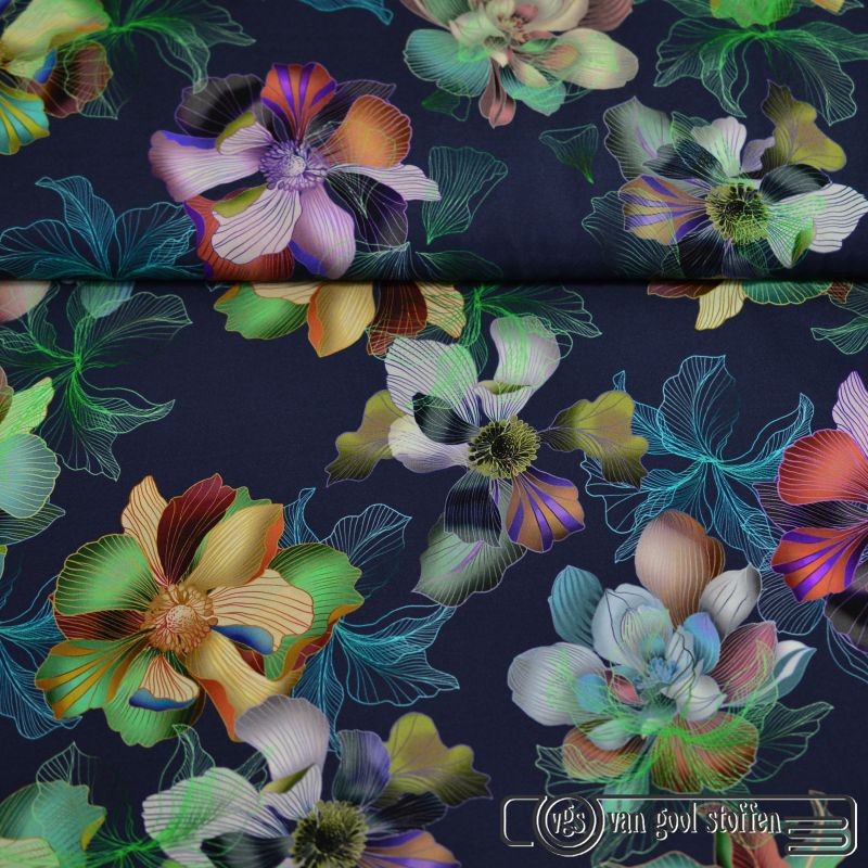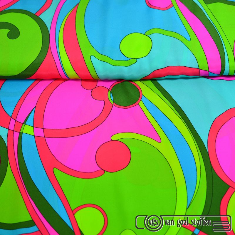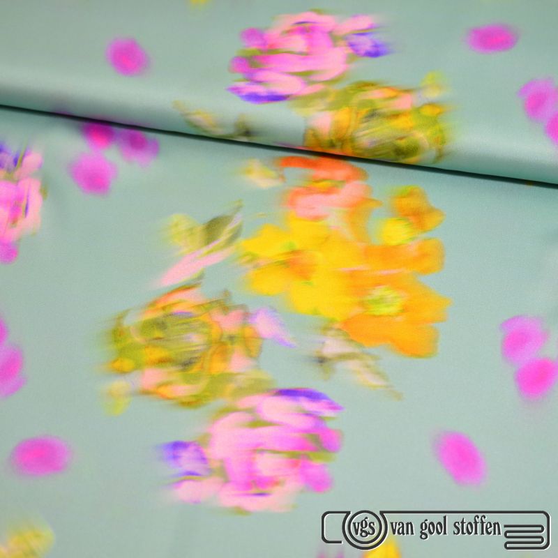 Coupon 170x136 zijde satijn stretch met bloemen print italiaanse designerstof lime groen