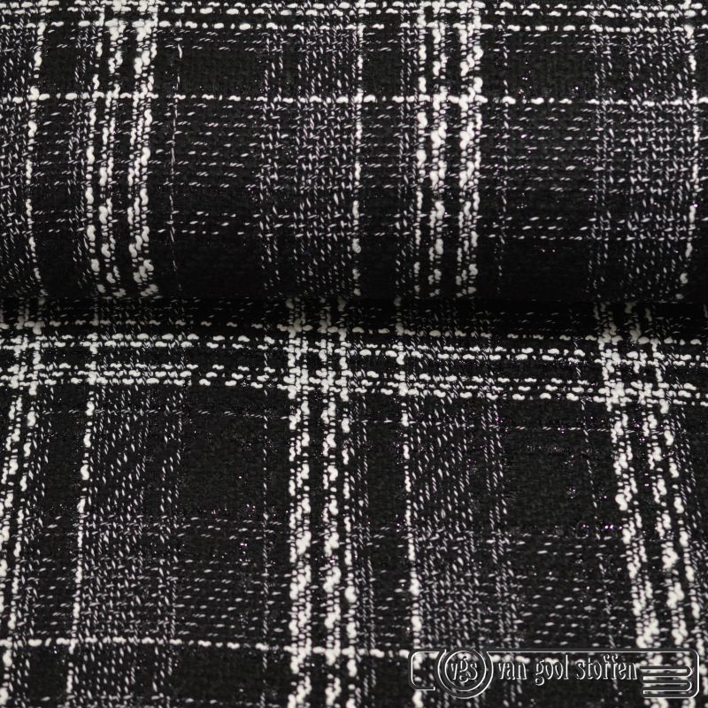 Italiaanse mantel stof exclusief design met haartjes motief. De haartjes zijn zwart en de ondergrond is een ivory zware mantel stof.