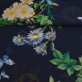 Luxe velvet quiltstof met een subtiel bloemmotief en een zachte, lichtblauwe voering.