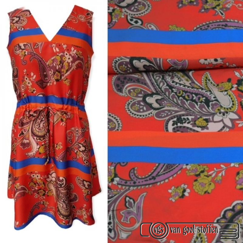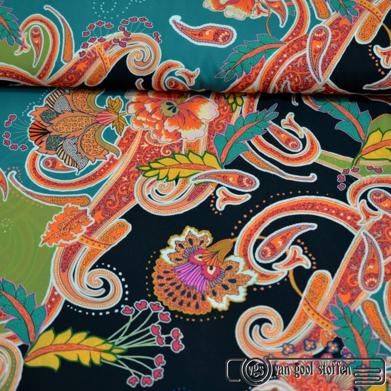 Voeg een stijlvolle, duurzame en exclusieve touch toe aan je creaties met deze bijzondere paisley floral viscose uit Italië.